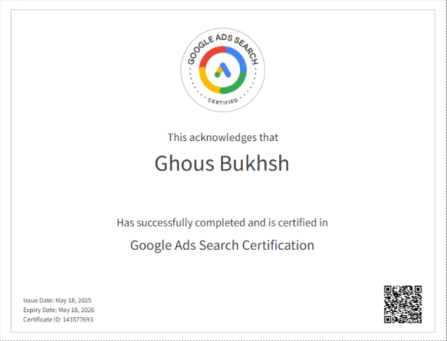 Ghous Bukhsh delivered outstanding results for our digital marketing strategy, boosting our online visibility and lead generation. His expertise in creating tailored campaigns made a big impact. Highly recommended!"